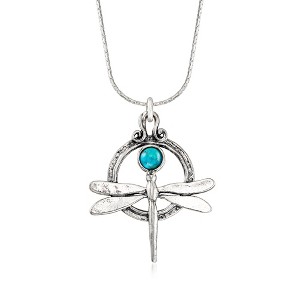 Ross-Simons Turquoise Dragonfly Necklace in Sterling Silver