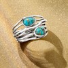 Polish off your ensembles with this ultra-chic statement! Crafted in polished sterling silver, this organic highway ring is adorned with vibrant 5x7mm stabilized turquoise cabochons. 5/8" wide. Turquoise highway ring. Stone InformationGem Type 1: Stabilized-TurquoiseStone Cut 1: CabochonStone Color 1: BlueStone Clarity 1: BlueStone Shape 1: Oval-ShapeStone Creation Method 1: NaturalStone Treatment Method 1: Dyed, StabilizedStone Weight 1: 0 CaratsNumber Of Stones 1: 2