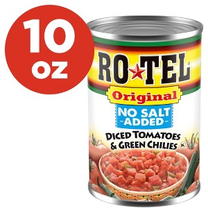 - Rotel Original No Salt Added offers classic spicy flavor, the ideal diced tomato and chili can to add some heat to your favorite dishes with less salt