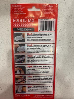 - PATENT PENDING: The ROTH ID TAG™ removable strip can be detached from the tag and used as an emergency medical wristband by first responders.