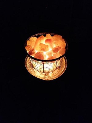 Looks nice for a rustic look. Nice you can control the light with a dimmer. Working out well. I've bought other salt lamps that had the light bulb break right away, or the wiring just didn't work properly. The only negative about this one is that it kind of makes a mess of small salt crumbs when you first open it and put it together.
