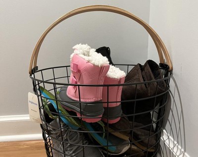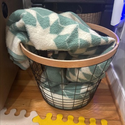 Round Black Wire with Natural Wood Handles Floor Basket - Brightroom™