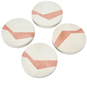 - Set of four (4) round coasters beautifully blends natural, boho-inspired abstract design with function