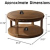 This round solid wood coffee table has an elegant, timeless charm, with a premium lacquer finish highlighting natural wood grain for a smooth, scratch-resistant surface. Decorative beaded trim adds classic detail, blending with modern and traditional interiors as a charming centerpiece. Functionally, its open two-tier design offers accessible shelves for quick access, reducing clutter. Each thickened tier holds 100lbs, ideal for books, plants, decor, or baskets. Its compact, space-saving build fits apartments and large spaces, maximizing vertical storage. It works as a coffee table, sofa side table, or end table.Sturdy construction includes four thick solid wood legs for stability. Premium solid wood ensures durability, and the lacquer finish makes spills easy to clean. In summary, this table blends style and functionality—elegant design, practical storage, sturdy build, and quickly assembly—perfect for elevating living spaces.
