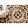 - Hand braided pile made of hand-spun, ethically sourced jute fiber, expertly screenprinted with a black geometric design