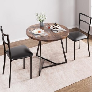 Round Dining Table Set for 2, Kitchen Table with 2 Upholstered Chairs, 3-Piece Circle Dining Table Set
