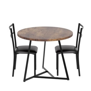 Experience cozy dining for two with this modern round dining table and upholstered chair set. Designed to maximize comfort and save space, the plush cushioned chairs fit neatly under the sturdy table when not in use. The durable steel frame and engineered wood tabletop ensure lasting quality, while the smooth surface is easy to maintain. Assembly is quick and hassle-free, making this set a perfect choice for small apartments and kitchens.