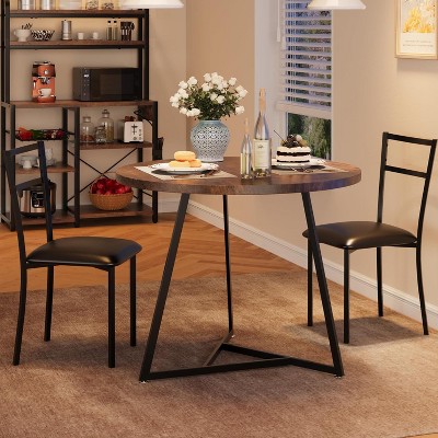 - Space-Saving Design: The 2 dining chairs conveniently fit underneath the small dining table, making this dining set an ideal solution for small spaces such as condos, kitchens, dining rooms, studios, or apartments. Dimensions: Table Size: 31.43” Dia x 29.53” H, Chair Size: 17.73” L x 15.33” W x 33.03” H.