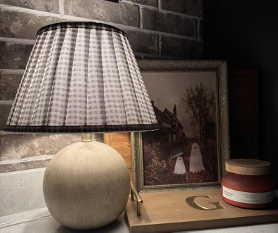 This is the cutest little lamp shade/lamp base. The combination has just enough interest but could work in any room! Quality is great and was shipped with tons of extra packing so it arrived in perfect shape! Just what my little TV room needed!
