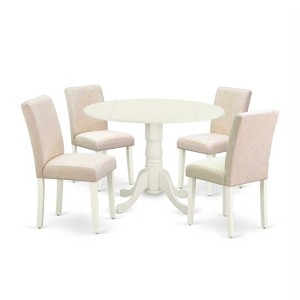 Round Kitchen Table Set with 4 Chairs - 42" Dinette Table & Parson Chairs - Linen White & Beige