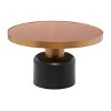 Contemporary and modern interior concepts gain a versatile furniture piece in this 100% iron-made coffee table. It has a wide and round tabletop surface that is supported by a short cylindrical base. Use it as a coffee table or lampstand in the living room. It can hold mini potted plants, alarm clocks, magazines, light books, figurines, picture frames, and telephones. This metal table's dimensions are 30"L X 38"W X 18"H.