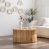 Round Wood Coffee Table, Tree Stump Style Side Table with Vertical Textured Design, Cylindrical Accent Table for Home