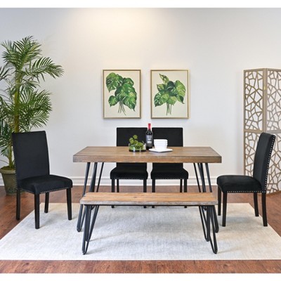 Ashford 6-Piece Dining Set, Hairpin Dining Table with 4 Chairs and Bench, 4 Color Options Beige