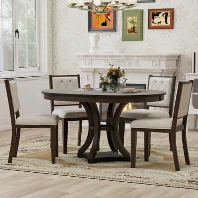 Roundhill Furniture Nylander 5-piece Dining Set, Cross-Buck Dining Table with 4 Chairs Purple