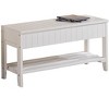 - Solid wood shoe bench features a clean white finish, enhancing any entryway or bedroom decor.