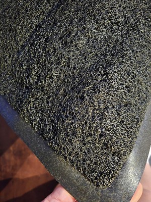 Not even close to the material or look of the pictures. its made of plastic spider web material. so much would get stuck in it. not a good choice for entry way rug. either that or they sent me the wrong rug! very cheap feeling and back feels like a trash bag surrounded by plastic instead of rubber.