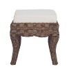 - With a frame made of mango wood wrapped in rattan binding, this vanity stool is sturdy and stylish