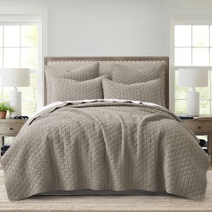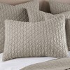[This review was collected as part of a promotion.] This quilt and sham set has a very soft texture. The tan color makes for a neutral palette to go alongside other bedding and decor. When I ordered it, I didn't notice that there was a crinkly type appearance in addition to the diamond design. I'm not sure I like how it looks. Anyway, the shams provide decent coverage for standard size pillows and I'm satisfied with them. Overall, this quilt set isn't bad, but I wish the dimensions of the quilt itself were smaller so that it wouldn't touch the floor as much (and become a potential trip hazard).