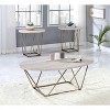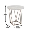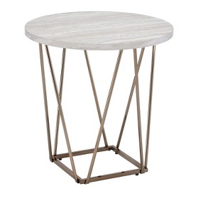 - Styling details include hexagonal web-style metal base, faux white marble top, and round shaped End Table Top