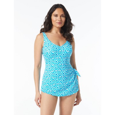 Radiate confidence and high style in our Roxanne V-Neck Sarong One Piece swimsuit. The tummy control panel offers extra smoothing and shaping for a sleek silhouette and TrueForm cups provide support and a full bust shape.
