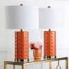 Illuminate your space with the Roxanne 26 inch orange ceramic table lamp set of two. These lamps bring a vibrant touch to any room with their striking color and elegant design. Crafted from ceramic, they add a modern flair while providing functionality. Perfect for side tables or nightstands, the Roxanne lamps create a warm and inviting atmosphere. Their sleek form combined with the bold orange hue makes them an eye-catching addition to your decor, effortlessly enhancing any setting with a pop of color. Add these stylish lamps to infuse your home with light and personality.