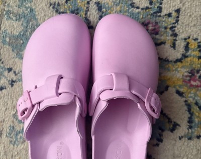 These comfortable clogs from Roxoni are the perfect choice for lounging around the house. Featuring an adjustable buckle strap and non-slip sole, they keep feet securely in place whether you're doing chores, caring for little ones, or simply relaxing after a long day. The lightweight EVA material molds to the shape of the foot for all-day cushioning and support. A roomy toe box gives feet ample space to breathe too. Best of all, the classic clog design is versatile - whether you style them with leggings, jeans, or PJs, they'll complement any casual look. Stock up in multiple colors for the whole family to enjoy hands-free comfort indoors.