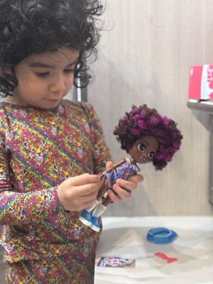 [This review was collected as part of a promotion.] Super cute and small which makes her easy to take places and my daughter to carry around. I love the little accessories and my daughter enjoys playing dress up with her. The doll is durable if she gets dropped and she wants another one.