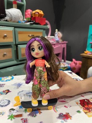 [This review was collected as part of a promotion.] This doll was a surprising hit with my daughter. Loved the sporty vibe and the fact you can attach her to the skateboard. Skateboard seemed sturdy and could roll smoothly. Again loved the sporty vibe of the doll- she’s wearing sneakers and jeans. Also my daughter is obsessed with the colorful purple hair.