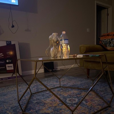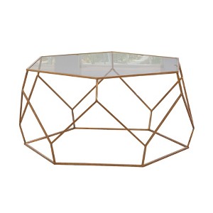 Roxy Hexagonal Cocktail Glass Table Gold - Steve Silver Co.: Iron Frame, Tempered Top