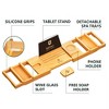 - ✅ ADJUSTABLE TO FIT YOUR BATHTUB: Expertly forged & hand-crafted with your needs in mind, our bathtub tray table expands from 29½ inches to 43 inches, ensuring the perfect fit to even the widest tubs. Easy to use, simply pull from each end to your desired width. Slip resistant silicone grips help keep the bathtub organizer securely in place so you won’t have to worry about having any of your personal items fall into the water. We also included a FREE BONUS GIFT, our bamboo soap dish as a treat!
