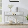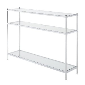 Add modern sophistication to your space with the Royal Crest 3 Tier Glass Console Table with Shelf by Breighton Home. This stylish and contemporary entryway table features three wide, spacious tiers, ideal for showcasing elegant decor or organizing essentials with ease. The clear tempered glass shelves are paired with a sturdy chrome metal frame, creating a luxe design that blends durability with sleek aesthetics. Perfect for the family room, living room, entryway, hallway, foyer, or beyond, this versatile hall table effortlessly enhances any room. Built to endure, it includes a polishing cloth for simple, low-maintenance care. Complete your home decor with other coordinating pieces from the Royal Crest Collection, each sold separately.