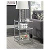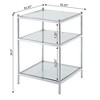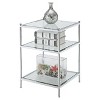 Enhance your living room decor with the Royal Crest 3 Tier End Table by Breighton Home. The Chrome frame provides the durability you need, while giving the contemporary look you want. Also featuring 3 tiers of glass shelves that provide plenty of space to display collectibles, or additional storage. Coordinating items available, sold separately.