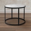Tastefully transform your living room, lounge, or family room look with this chic, round top modern side end table. Crafted from a durable iron frame, this piece features an eye-catching white marble top for serving drinks, snacks, or for simply placing a tasteful table lamp and your handy electronics. Its sleek black powder coated frame ensures lasting stability for years to come, totally complete with nonslip floor levelers that protect your floors and keep the table from wobbling. All in all, you can effortlessly add a touch of confidence and class to your interior aesthetic today when you bring home this timeless and tasteful side end table, a piece that effortlessly blends classic beauty and contemporary craftsmanship into one mesmerizing home accessory.