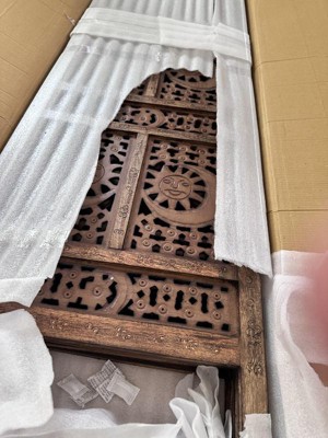 Brimming with elegance and sophistication, our four-panel room divider adds a unique character to your interior decor. With hand-carved sun and moon design, it is crafted from a durable mango wood frame in a harmonizing brown tone finish. This easy-to-fold room divider can be placed in your bedroom, living room, or den to add some privacy or to simply add a bold style statement. This piece can virtually blend in with any decor style, color scheme, or theme.