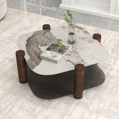Refresh your living space with this coffee table, which has smooth, rounded lines and an elegant oval shape. The tabletop's light teal chenille and natural wooden finish add a unique touch to any room. Its distinctive knitting process brings texture and depth, making this coffee table a sophisticated and stylish centerpiece. Check out our Reah collection for more options.