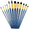 - This package contains two soft black taklon standard handle bright brushes (sizes 10, 20), three flat brushes (sizes 14, 18, 22), five round brushes (sizes 4, 6, 8, 16, 24) and two filbert brushes (sizes 2, 12) within one 11x6 inch zippered pouch.