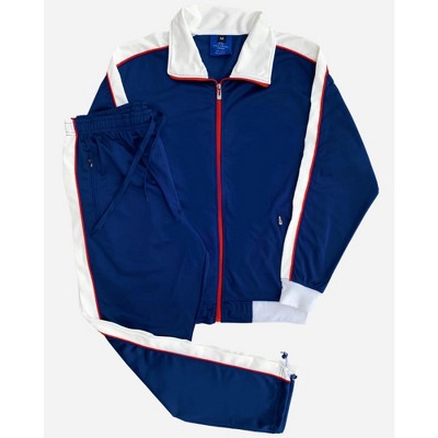 1.Full zip up track jacket with 2 zippered side pockets matching tracksuit.
