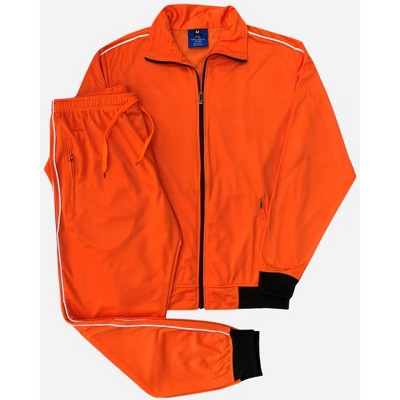 About this item 1.Full Zip up track jacket with 2 zippered side pockets 2.Seamlessly comfortable track material, ideal for the spring and fall weather. 3.Trimmed jogger track pants with 2 zippered side pockets and drawstrings around waist. 4.Relaxed fitting for maximum comfort and movement 5.60% Cotton 40% Polyester