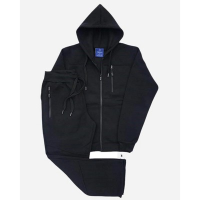 - Set encompasses matching Sweatpants with the hoodie, featuring 2 zippered side pockets, 1 back pocket, and an adjustable elastic waistband with drawstrings.