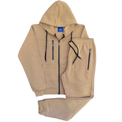 About this item 1. Full fleece zipper closure hoodie with 2 side pockets and drawstrings around hood 2. Elastic waist fleece trimmed jogger sweatpants with 2 side pockets and 1 back pocket 3. Soft, durable, relaxed, comfortable fitting, winter warm fleece material cuts true to size. 4. 60% Cotton 40% polyester