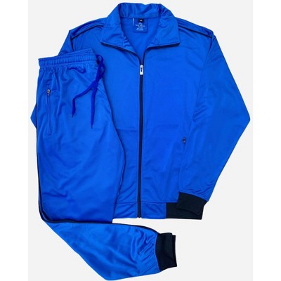 Matching track pants with 2 zippered side pockets, an elastic waistband with drawstrings and drawstrings at ankle to pull for a jogger style look