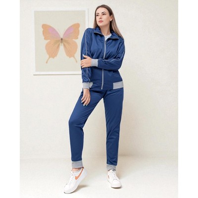 Royal Threads Women’s Co ord Tracksuit 2-piece Tracksuit Loungewear Set Navy/Royal/Red S
