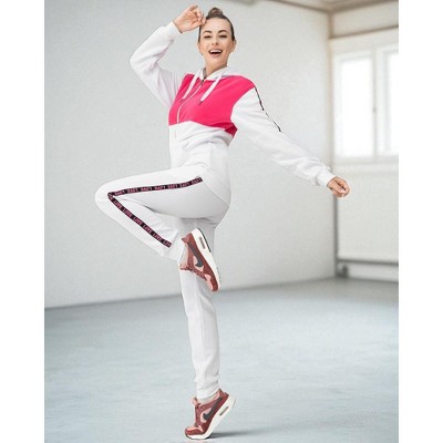 This women 2-piece matching tracksuit set is a great fit for the spring and fall weather in a stylish two color combination outfit with stripes. 2-piece matching co ord sets are a part of everyday life from the GYM the sports field and working from home to daily casual activities. This women Tracksuit features a seamlessly comfortable track material suitable for any age. The jogger style tracksuit track pants are in line with current women co Ord fashion trends in loungewear sets.