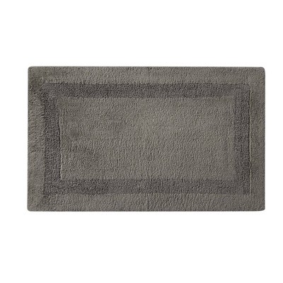 [This review was collected as part of a promotion.] I received 2 dark grey 17x24 inch mats. The color in real life is a little lighter than what my camera captured. It’s a neutral shade that seems to go with everything. I’ve been using mine in front of the sink, not in front of the tub, so I don’t know how absorbent it is. It’s very thick and luxurious to stand on, but keep in mind that it might be too thick for a door to close over, like in my photo. I’ve machine washed and dried them once successfully, and the non-slip backing seems ok so far, but only time will tell how durable the backing will be. The corners have a tendency to curl under, but they straighten out once I put the mat down on the floor. The mat itself seems to be good quality, but because it’s shaggy cotton, it looks a bit messy, especially after it’s been stepped on a few times. They’re good mats for a small, informal bathroom.