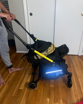 [This review was collected as part of a promotion.] I never had a travel stroller but this is definitely what I would choose if I ever had one. It’s so cute and fun. The yellow is vibrant, the black is deep, the outside stroller feels very waterproof. The part where the baby sits is like a soft plush material. The stroller is easy to use once you figure out all its little snaps and clicks. The instructions are straight forward in telling you what to do. It’s not heavy. It comes with a little bag which I thought was nice. Wheels roll easy. There are two compartments to open to see the baby while in the stroller, one is magnetic and one rolls and clips. My only complaint is you can’t put the stroller down once you reverse the seat, you have to place the seat forward, then put it down. That’s not that big of a deal to me, I was happy the seat even could be reversed.