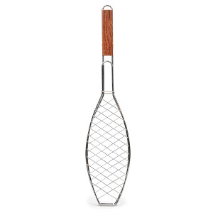 Barbecue like a Pro with this great fish grilling basket from RSVP. With a long handle, it allows you to grill fish to perfection While keeping your hands safe from the flames. Fabricated from chrome plated steel, It has a Rose wood grip that provides both function and style. The hook on handle allows for convenient and easy storage, and the basket can grill one fish at a time. 26" L