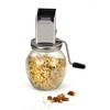 - Features a stainless steel hopper and a manual hand crank and a 1.25 cup clear jar.