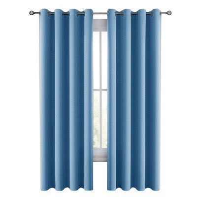 RT Designer Collection Gable Embroidered Blackout Luxurious Decorative Grommet Curtain Panel Slate Blue