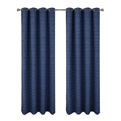 RT Designer Collection Lilian Embroidered Blackout Luxurious Decorative Grommet Curtain Panel Navy