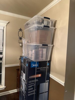 [This review was collected as part of a promotion.] These storage containers came in clutch! I received these as we were just moving into a new house. I used these to help organize all my decor for the difference seasons. They stack well and hold a lot of stuff inside. I also like that it is clear so I can see what’s inside. :)